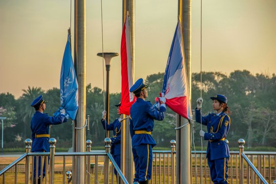 本次升旗仪式不仅是对国旗的庄重致敬,更唤起了我们内心深处对祖国的无尽热爱和崇高敬意。在庄严肃穆的升旗仪式中,我们不仅点燃了师生的爱国热情,传承了深厚的爱国主义精神,更激发了物流学子坚定的信念和强烈的民族自豪感,相信未来同学们将秉持初心,砥砺前行,为描绘新时代的美好画卷而不懈奋斗,为实现中华民族的伟大复兴贡献自己的青春力量。