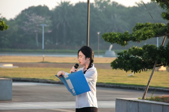 随后,今天升旗仪式的三位学生代表,周嘉怡、叶颖思和郑楚儒依次登台发表讲话。他们以满怀深情的话语强调了爱国主义教育的重要性,并借助自身成长的轨迹,激励着每一位同学要精心规划自己的人生轨迹,珍惜每一个转瞬即逝的机会,全身心投入到专业学习中,勇敢地参与各类竞技,不断提升自我,全方位掌握各项技能,不断充实和完善自身的不足,将个人的梦想融入国家复兴的伟大蓝图中,才能绽放出最耀眼的光芒。