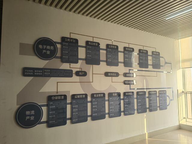 实训平台是文化墙的重要展示内容。其中,2009年建成的物流综合实训室配备AGV货到人系统、MR模拟拣选系统、立体仓库等先进设备,可模拟供应链全场景操作;2023年建成的跨境电商与双创多功能实训室、新媒体运营实训室,构建“教学—实训—创新”三位一体体系,两大实训中心的设备实景与功能介绍,直观体现学院为学生搭建的“理论—实践”衔接桥梁。