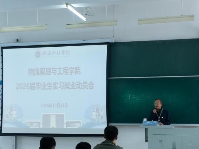 学院于10月23日在博文楼E201、E202召开2026届毕业生实习就业动员会,为毕业生就业之路精准导航。学院党委副书记、学工办主任谢伟主持会议,副院长张相斌教授,2022级辅导员闫秋月、何丽婵,教学秘书王思元出席,全体2026届毕业生参会。会上,张相斌结合物流行业发展趋势与人才需求导向,深入剖析当前就业形势,为毕业生实习择业提供专业指导;谢伟就就业政策解读、求职技巧提升、就业权益保障等关键问题进行详细讲解,引导毕业生树立正确就业观。此次动员会有效凝聚思想共识,帮助毕业生明确就业目标,为后续就业工作开展奠定坚实思想基础。