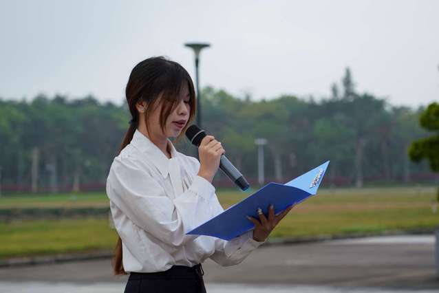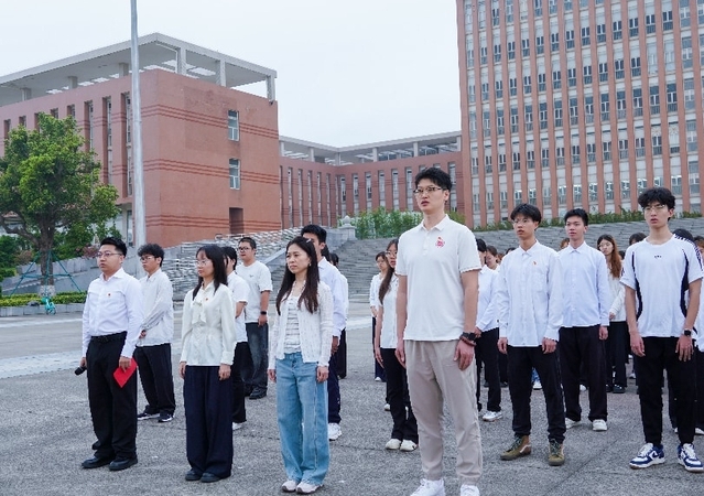 仪式上,李昊杰、何依玲、张耿豪三位学生担任升旗仪式的国旗手、校旗手和院旗手,并作国旗下发言。他们深刻阐释了国旗对于国家和青年的象征意义,勉励在场学子,要将个人理想融入国家发展大局,在脚踏实地的求知探索与敢闯敢试的实践创新中练就过硬本领,以拼搏与担当书写无愧于时代的青春华章。