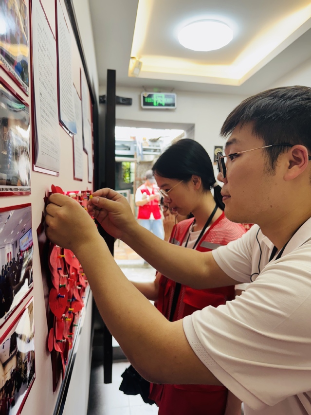 潘国栋与学生在留言墙写下美好祝愿